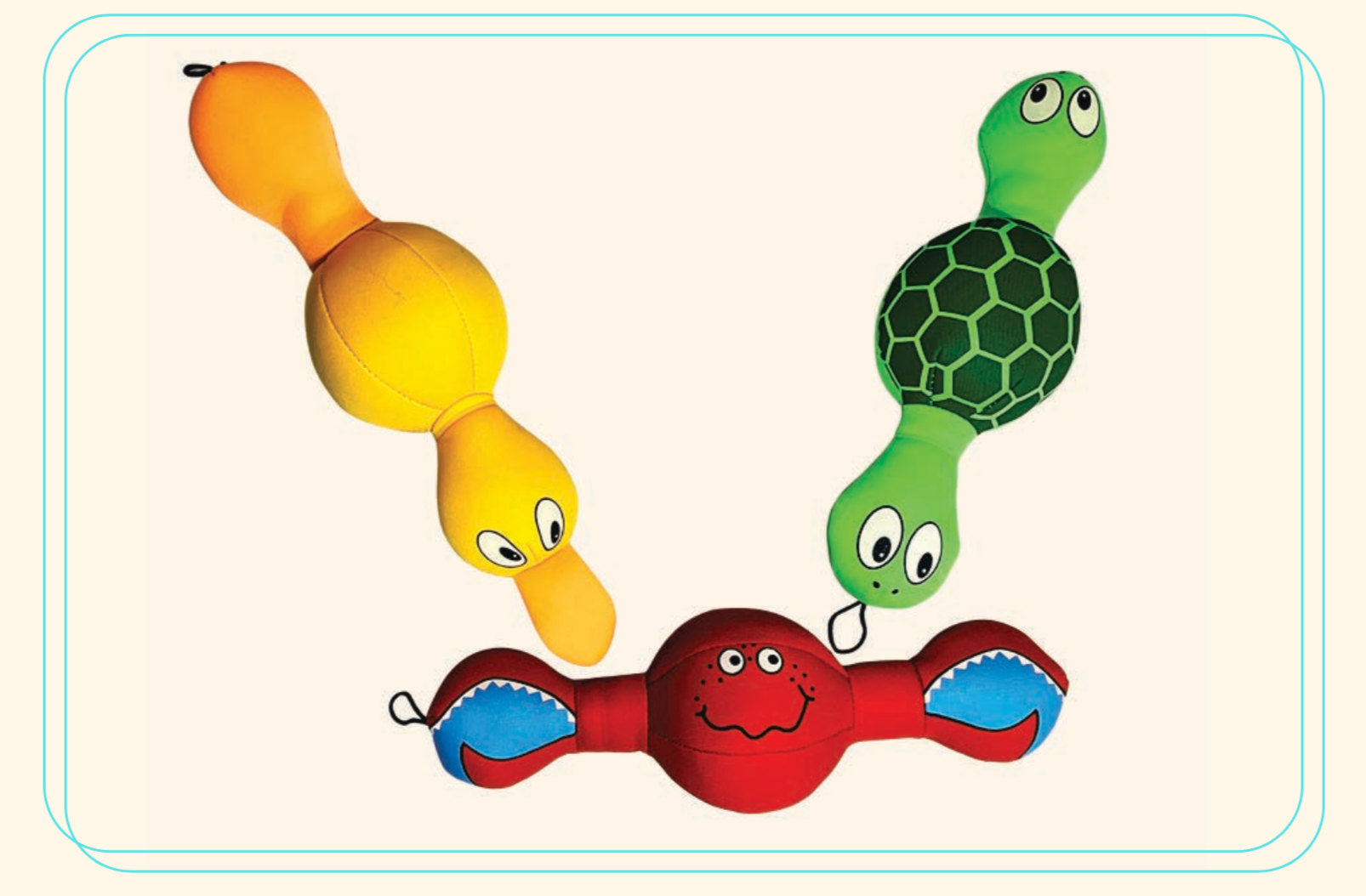 Floating Fetch Yellow Duck with Sqeakers. This toy is a great floater and fun for fetching in the water. Bright Green will be irresistible for your dog.