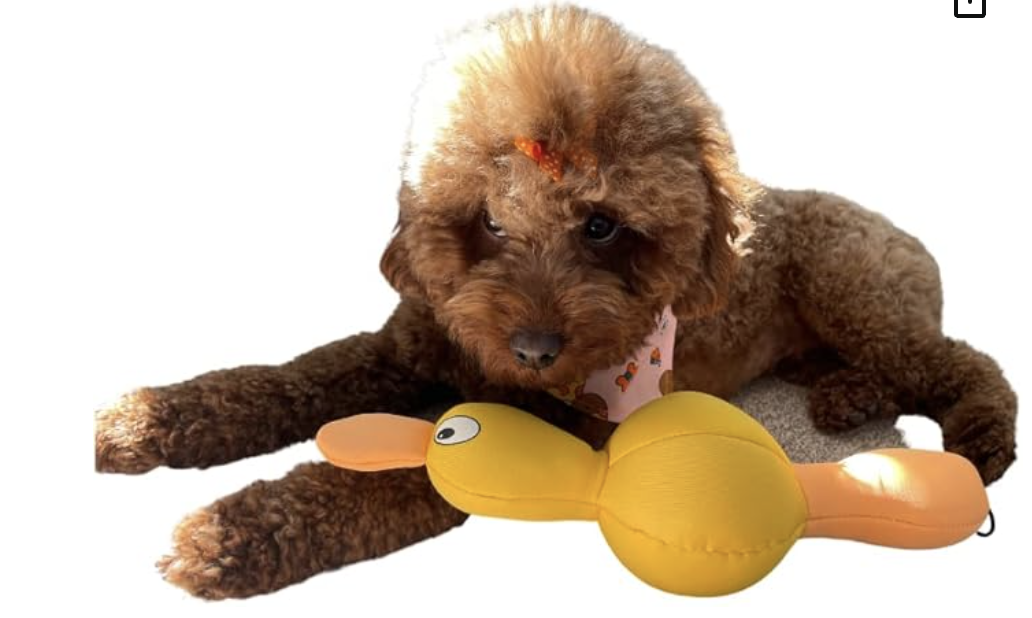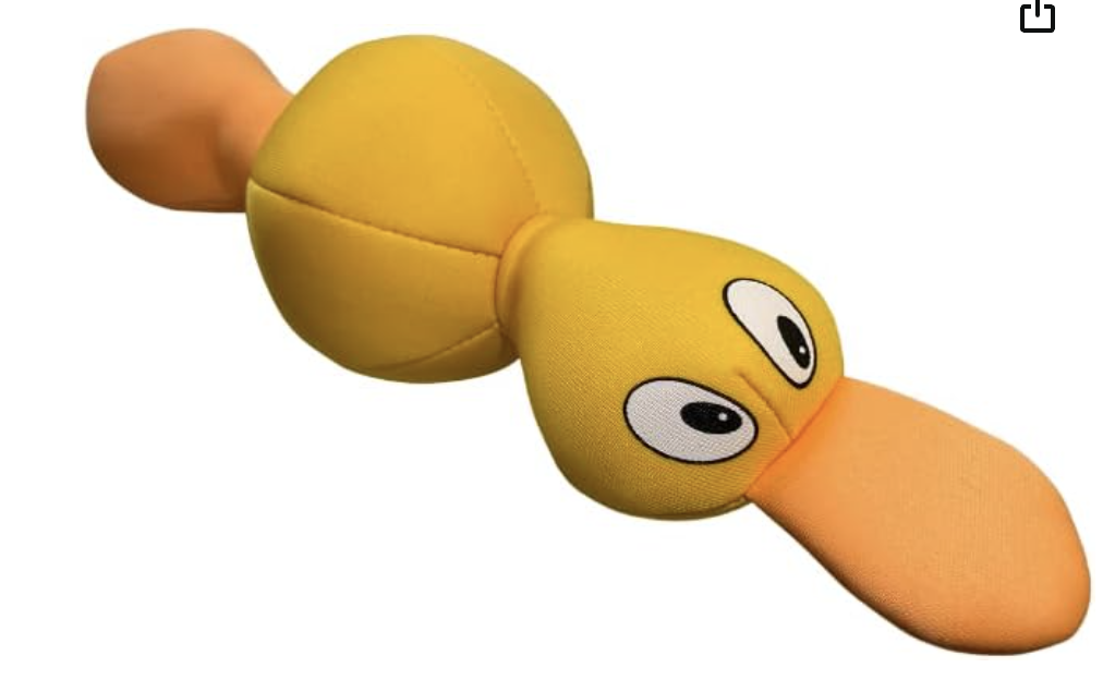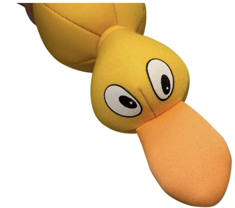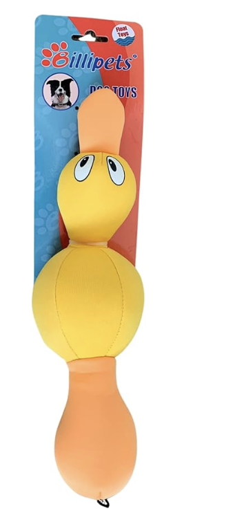 Floating Fetch Yellow Duck with Sqeakers. This toy is a great floater and fun for fetching in the water. Bright Yellow will be irresistible for your dog.