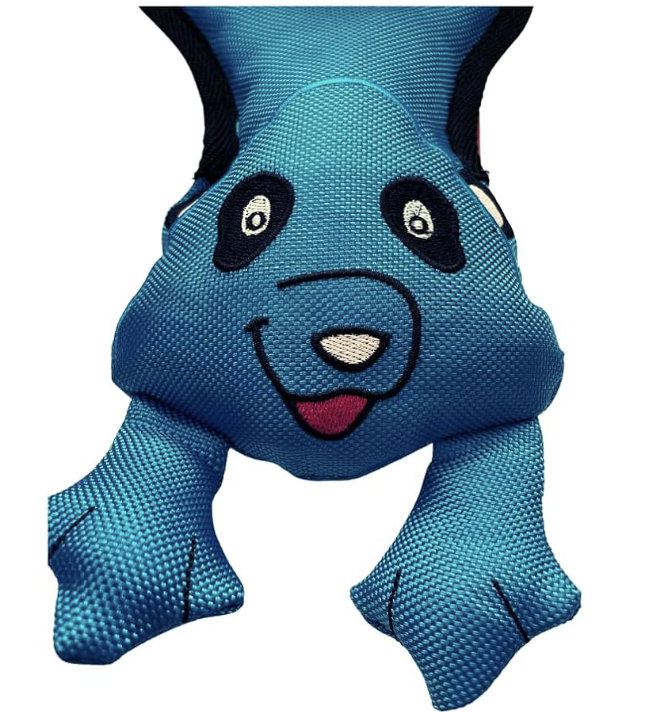 Durable, Colorful, Floatable, Interactive dog toy with squeakers. This toy is a great floater and fun for fetching in the water. This Blue Bear will be irresistible for your dog. With the handle, it is also a fun toy for tug of war!