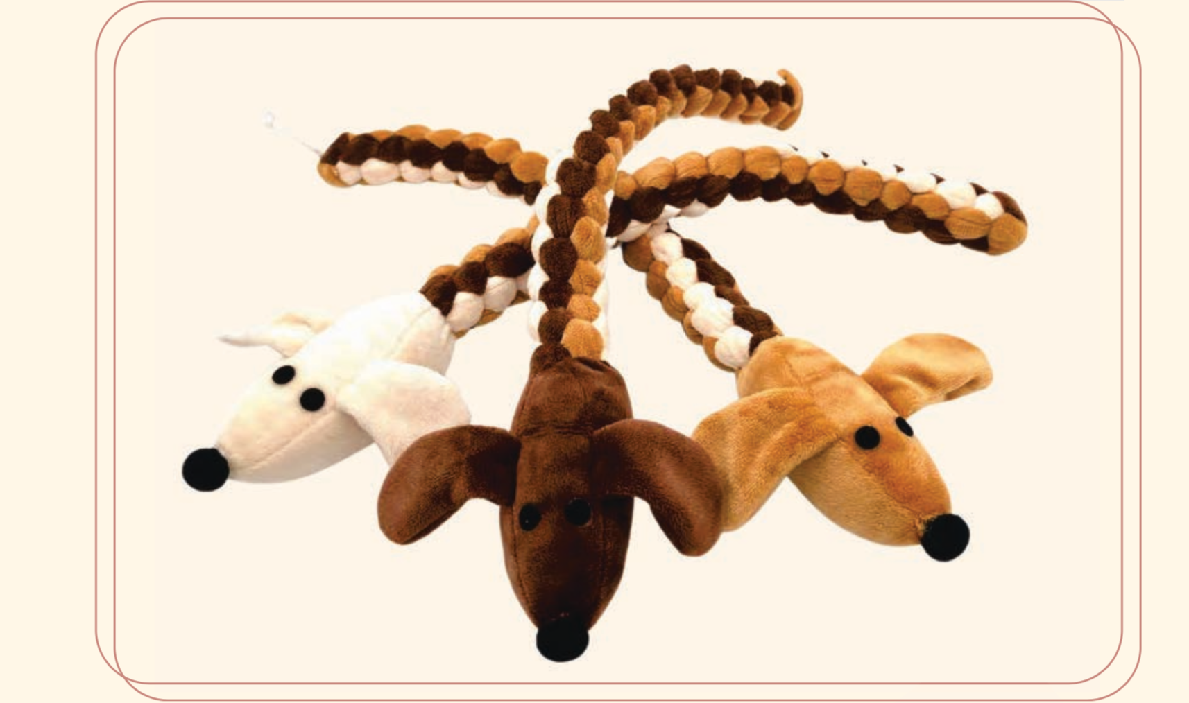 Plush Light Brown Dog woven rope interactive toy provides extra durability with 4 Squeakers