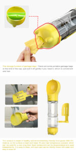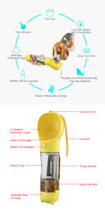 Billipets 3 in 1 Portable Pet Water Bottle, 300ml bottle, Food Bucket, Poop Bag for Dog Cat Pet Outdoor Walking Travelling Drinking, Yellow
